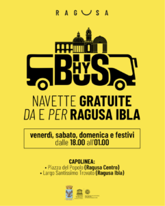 Con i consueti capolinea in Piazza del popolo e in Largo Ss Trovato ed orario continuato dalle ore 18.00 alle ore 01.00 è ripartito HyBus, il servizio navetta gratuito che collega il centro storico dalla zona Superiore a Ibla, così da garantire un servizio semplice, chiaro e diretto. Al capolinea di HyBus di Piazza del Popolo è disponibile un ampio parcheggio coperto attivo h24.