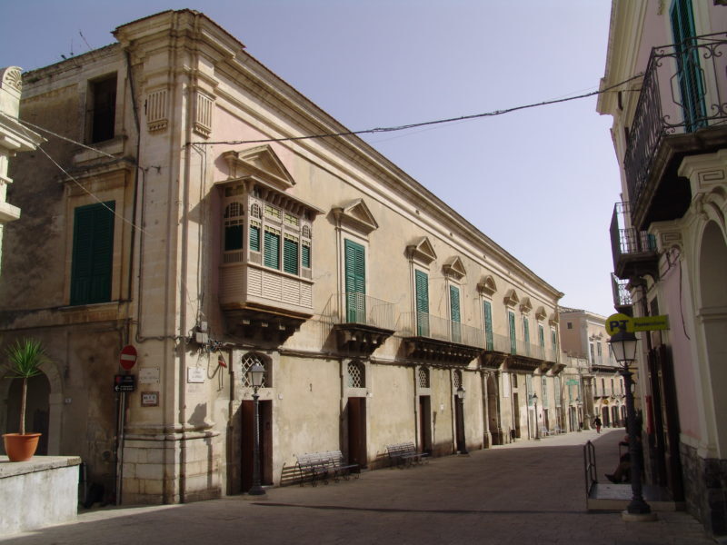 Lungo corso XXV aprile si sviluppa l’imponente palazzo che fu del Barone di Donnafugata. L’eleganza essenziale del prospetto è una interessantissima testimonianza del Neoclassico siciliano. All’interno custodisce un piccolo teatro, il Teatro Donnafugata.