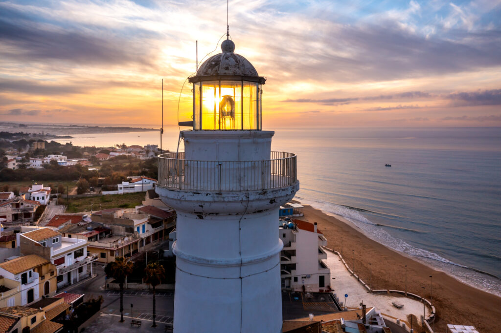 Al centro di Punta Secca, si erge sulla piazza adiacente al mare e sul piccolo porticciolo, l’alto faro bianco che divide in due il lungomare. Il faro fu progettato dall’ingegnere Nicolò Diliberto D’Anna. Costruito nel 1858-59, è alto 35 metri e può considerarsi una delle maggiori opere pubbliche del governo borbonico in provincia di Ragusa.