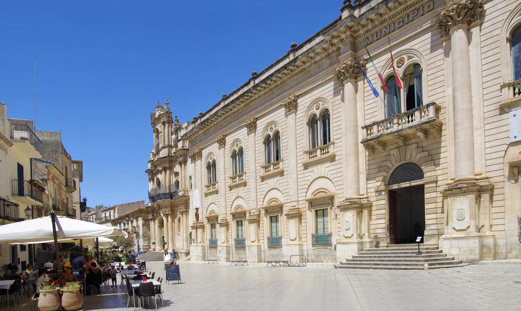 Piazza Italia è la piazza più grande di Scicli. Dal basso della piazza si può ammirare l’antica chiesa Madre di San Matteo e l’attuale chiesa Madre, dedicata a San Guglielmo. All’interno c’è l’imperdibile statua della Madonna delle Milizie, la Madonna guerriera di Scicli