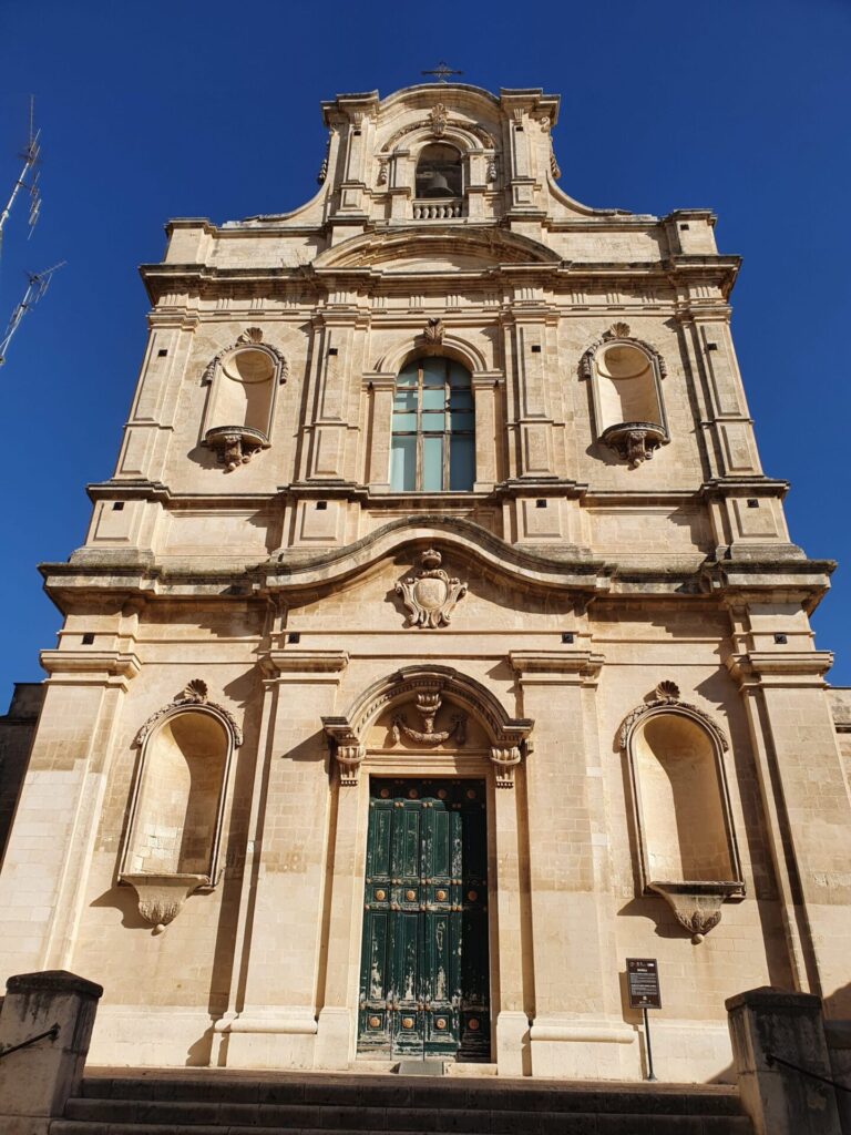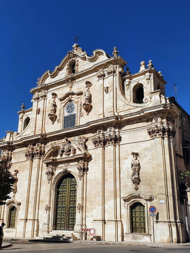 Sul colle di San Matteo, la chiesa domina la città ed è un importante punto di riferimento, visibile da quasi tutto il centro. Distrutta dal terremoto del 1693, è stata ricostruita ma mai stata completata, tanto che oggi si mostra come una magnifica incompiuta. Dal sagrato della chiesa si gode di un bellissimo panorama sulla città e si vede il mare.
