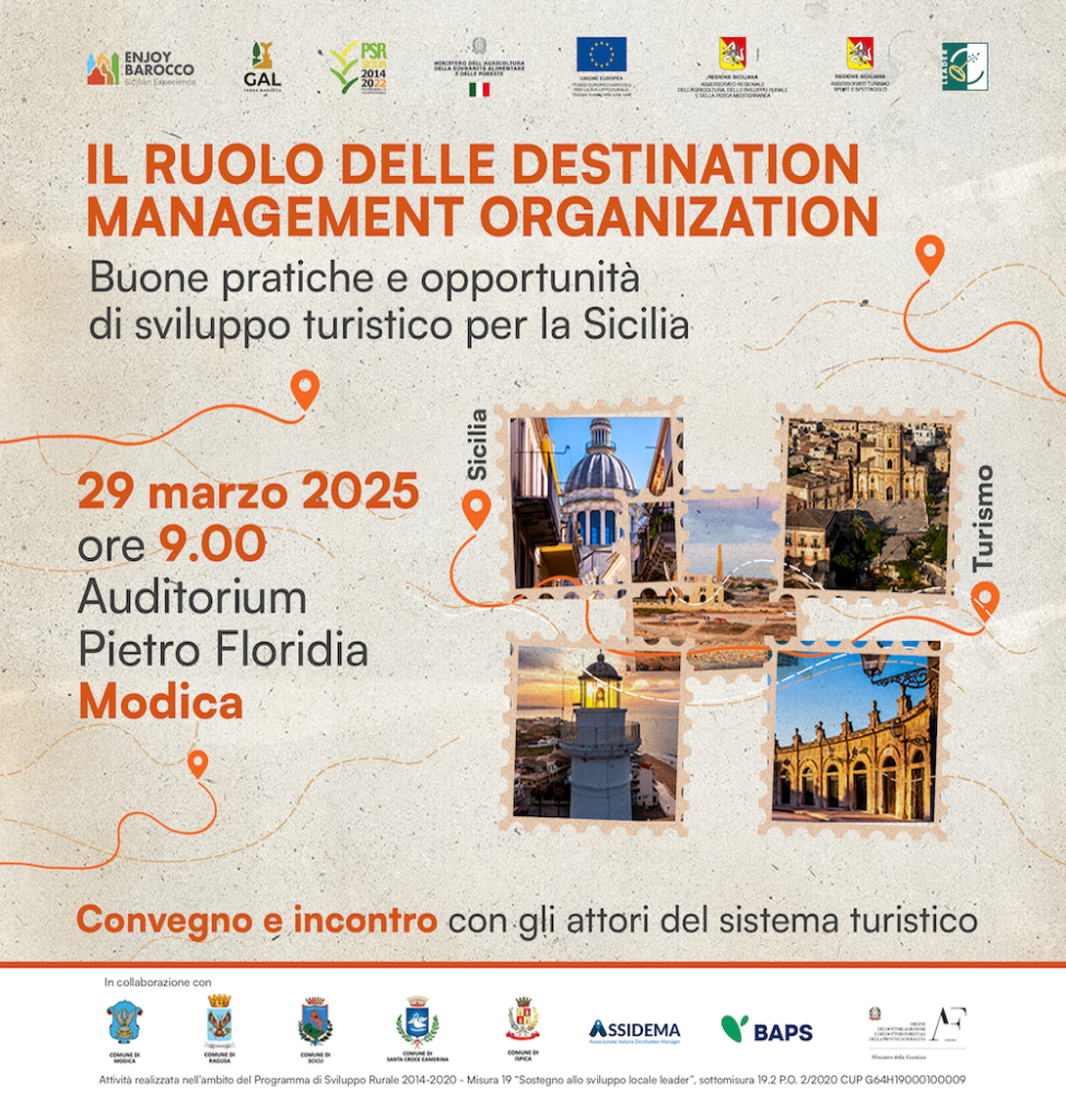 A concludere i lavori, gli interventi di due figure chiave dell’amministrazione regionale: Elvira Amata, assessore al Turismo, Sport e Spettacolo della Regione Siciliana, e Salvatore Barbagallo, assessore all’Agricoltura, Sviluppo Rurale e Pesca Mediterranea. “Le Destination Management Organization – spiega il presidente del GAL Terra Barocca, Maria Monisteri – si configurano oggi come strumenti essenziali per la valorizzazione e la promozione del territorio, in grado di coordinare attori pubblici e privati per la creazione di un’offerta turistica integrata e competitiva. Il convegno di Modica si pone l’obiettivo di esplorare le opportunità offerte da queste organizzazioni, analizzando modelli di governance, strategie di branding territoriale e l’impiego delle nuove tecnologie per la valorizzazione delle destinazioni”. Durante la giornata saranno protagonisti anche i tre progetti finanziati dal GAL Terra Barocca sui prodotti della filiera corta, testimonianza dell’attenzione crescente verso un turismo enogastronomico autentico e sostenibile, strettamente legato al territorio. Info e prenotazione obbligatoria sul sito www.galterrabarocca.com