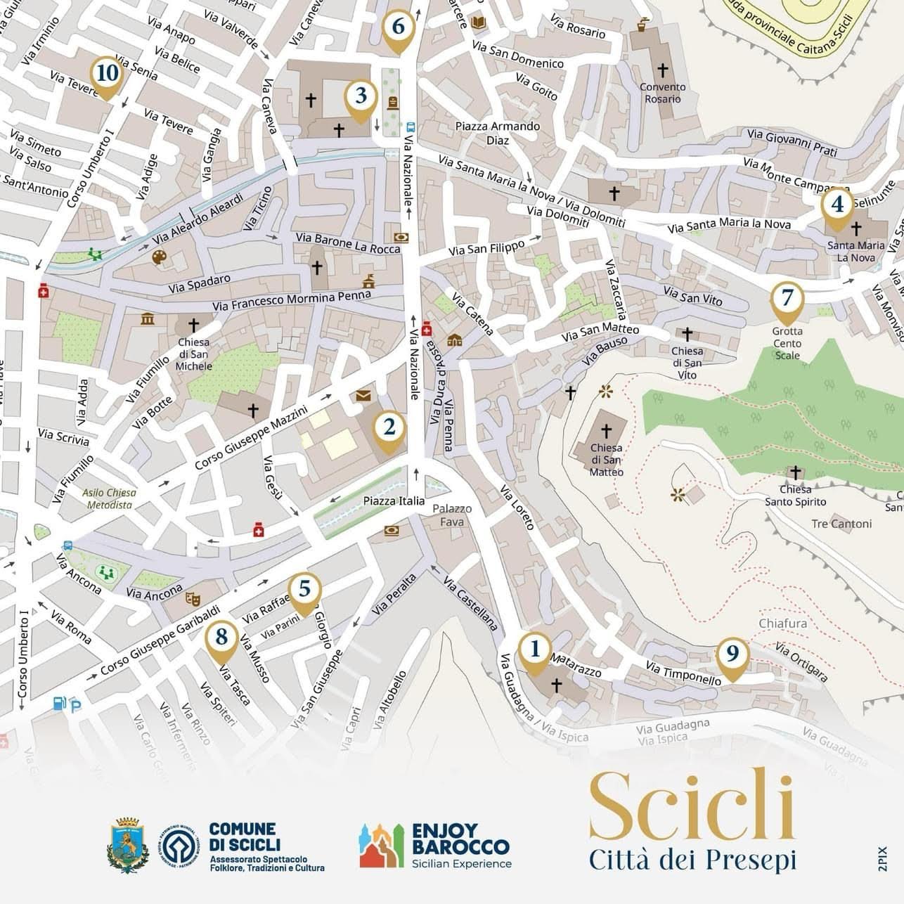 Ma c’è di più. Le Vie dei Presepi non è solo un omaggio alla tradizione del presepe; è anche una celebrazione dell’ospitalità e della generosità della comunità di Scicli. Le famiglie aprono le porte delle proprie case, invitandovi a immergervi nella cultura e nelle tradizioni locali, regalando un’esperienza coinvolgente e autentica. I siti dell’itinerario sono: il Presepe di San Bartolomeo nella Chiesa di San Bartolomeo, il Presepe “Chiafura” in via Tasca, il Presepe della Famiglia Caruso, in via Parini, il Presepe nella grotta di don Carmelo, in via Timponello, il presepe nella grotta delle Cento Scale, in via Dolomiti, cui si aggiungono il presepe della chiesa Madre, quello della chiesa di Santa Maria la Nova, il presepe della famiglia Sammito in via Tevere e il presepe della signorina Maria Grazia Arrabito in via Nazionale.