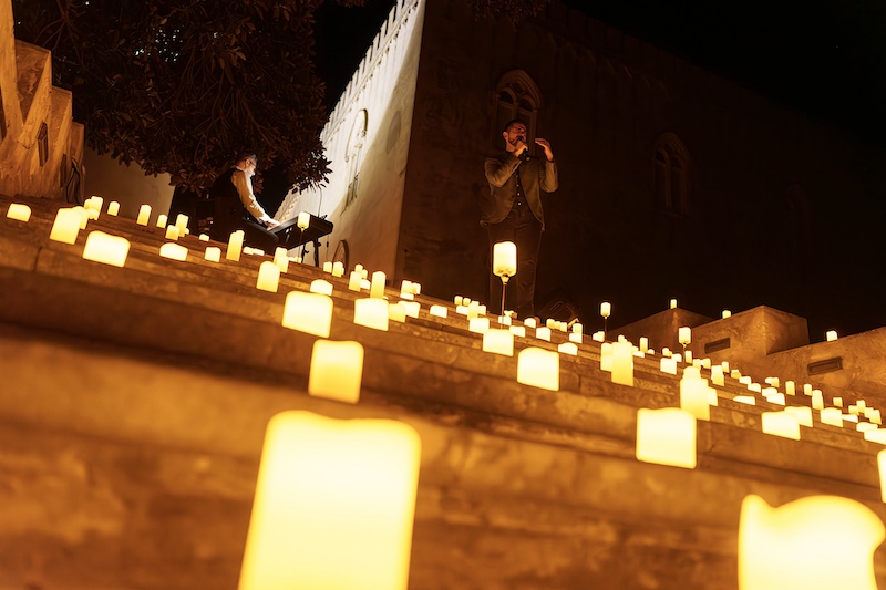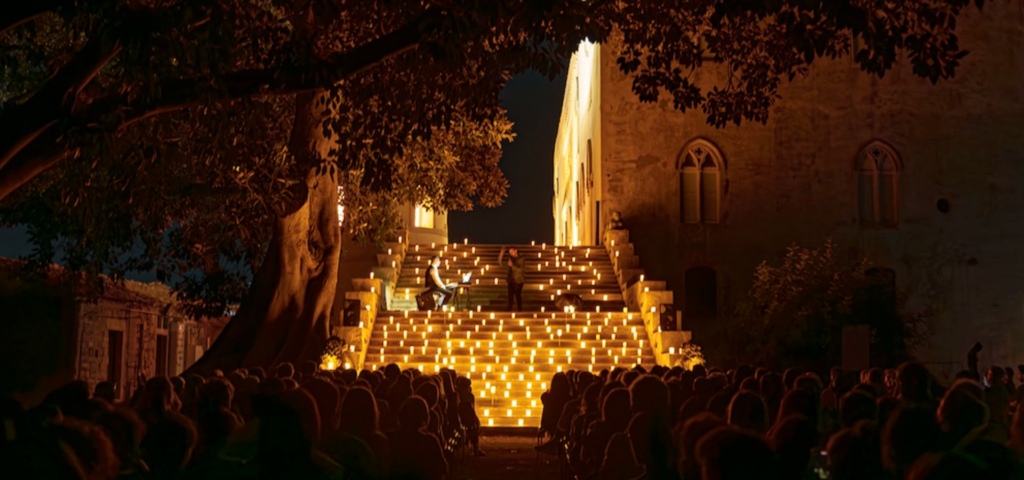 Un esempio straordinario di questo fascino è stato il concerto “Novecento” di Alessandro Baricco, ospitato nella suggestiva cornice del Castello di Donnafugata. Questo gioiello architettonico, con le sue torri circolari e i giardini storici, ha creato un’atmosfera accogliente e raffinata. Le antiche mura illuminate dalla luce delle candele hanno trasportato i partecipanti in un’epoca dorata, rendendo l’esperienza sensoriale unica. Gli ospiti sono stati accolti dall’allure senza tempo di questa residenza nobiliare, trasportati indietro nel tempo fino all’epoca dorata del Barocco siciliano.